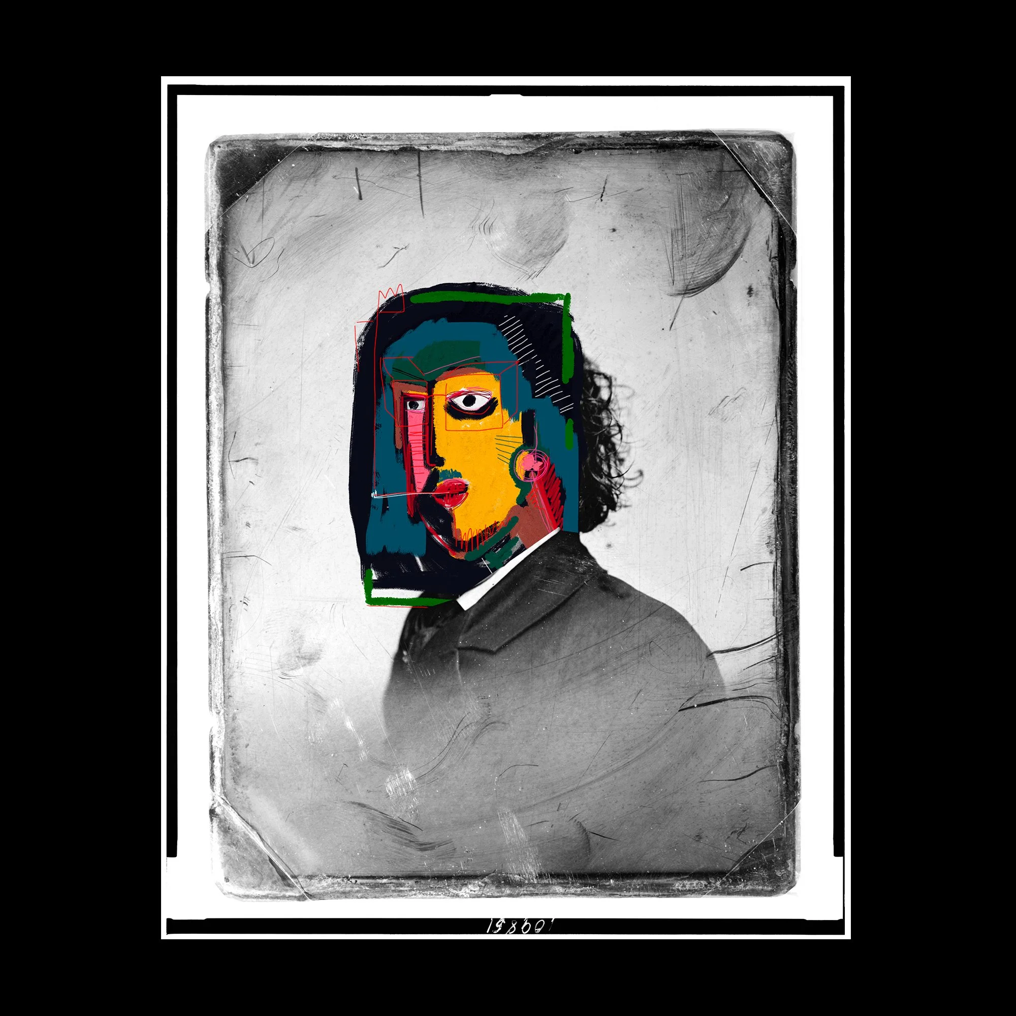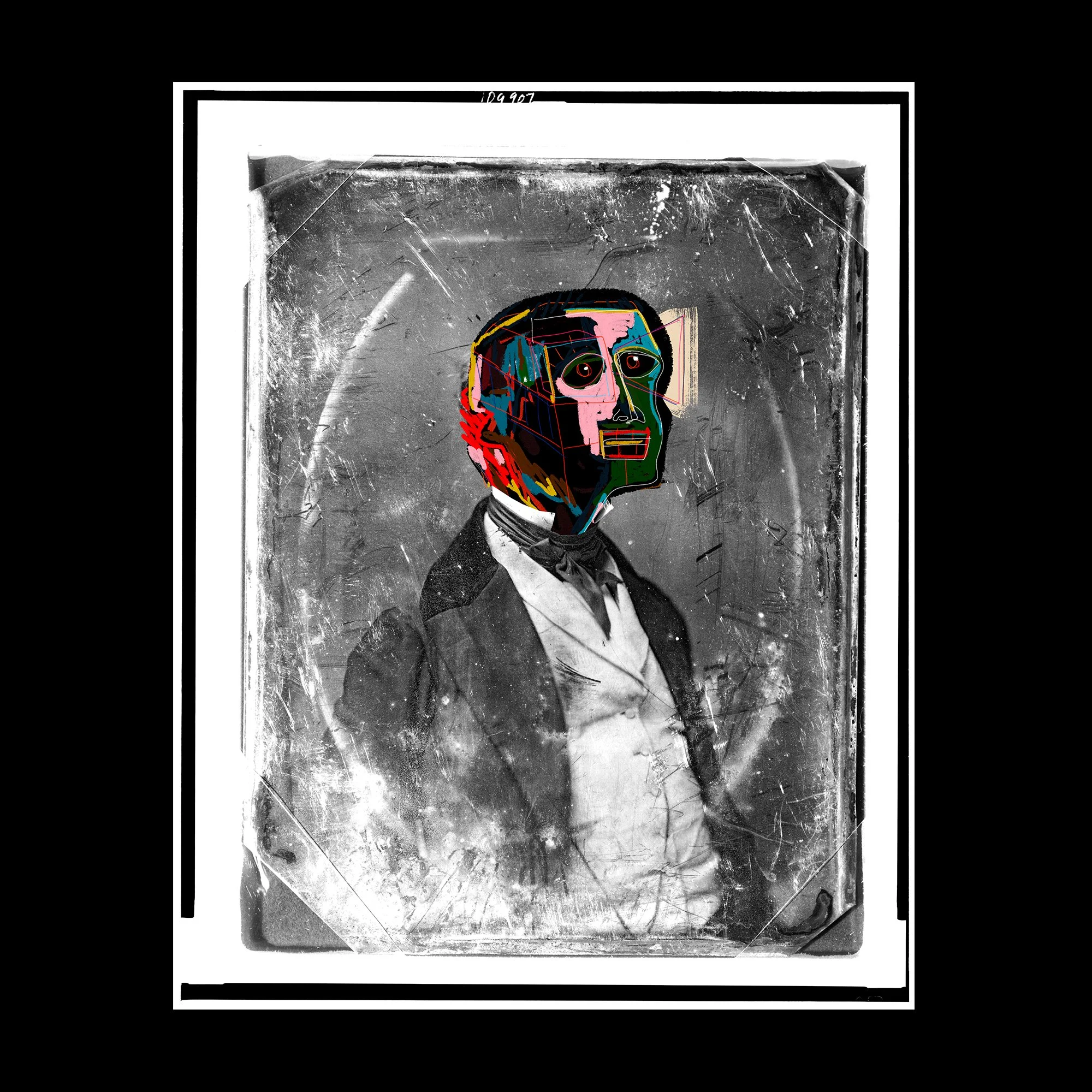 Mathew B. Brady was a pioneer of photography. He documented the American Civil War and created iconic portraits of generals, politicians, and anonymous individuals. In the Heads series, Moulin reimagines the subjects of Brady’s daguerreotypes by drawing over the portraits, inviting the viewer to reconsider the narratives tied to these individuals and their era. The recontextualized portraits explore the tension between identity, history, and memory.